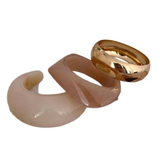 TEEK - Golden Beige Geometric Thick Oversized Bangles