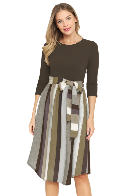 TEEK - Puff Sleeve Round Neck Striped Color Sweater