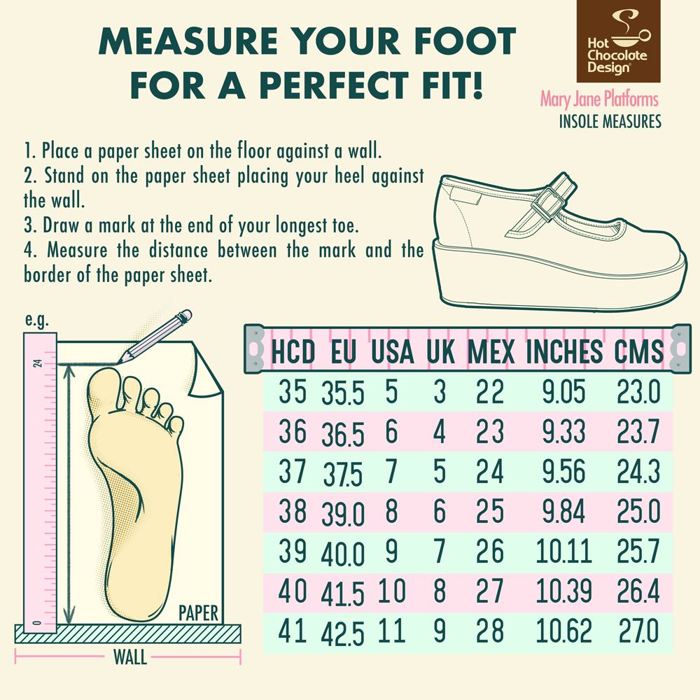 Experience comfort and style with the Chocolaticas® Thank You Music Women's Mary Jane Platform. Featuring a printed fabric upper and wedge, this shoe offers a semi-rigid wedge and a non-marking rubber sole for lasting wear. The cushioned inner sole and adjustable buckle strap ensure a comfortable, secure fit. With a 2.2-inch platform height, it combines the ease of flats with a touch of elegance. Proudly vegan and available in various sizes, these platforms are perfect for adding height without sacrificing comfort. Check the Hot Chocolate Design Size Chart to find your ideal fit and collect them all! Delivery in 5-10 days.