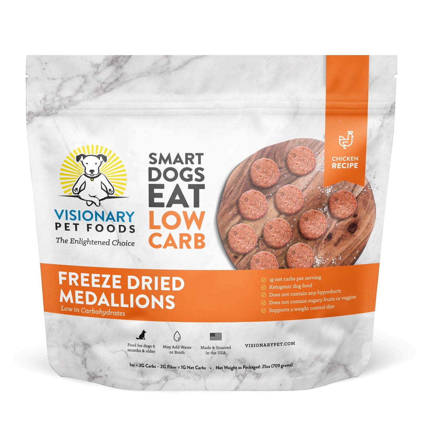 This freeze-dried Chicken Recipe is ketogenic and prepared solely with human-grade ingredients. It follows the same diet used at KetoPet, supporting your dog’s health with low-carb nutrition. Each 25oz bag includes around 310 medallions. Order today and find out why many dogs benefit from a low-carb diet. Delivery takes 5-10 days.