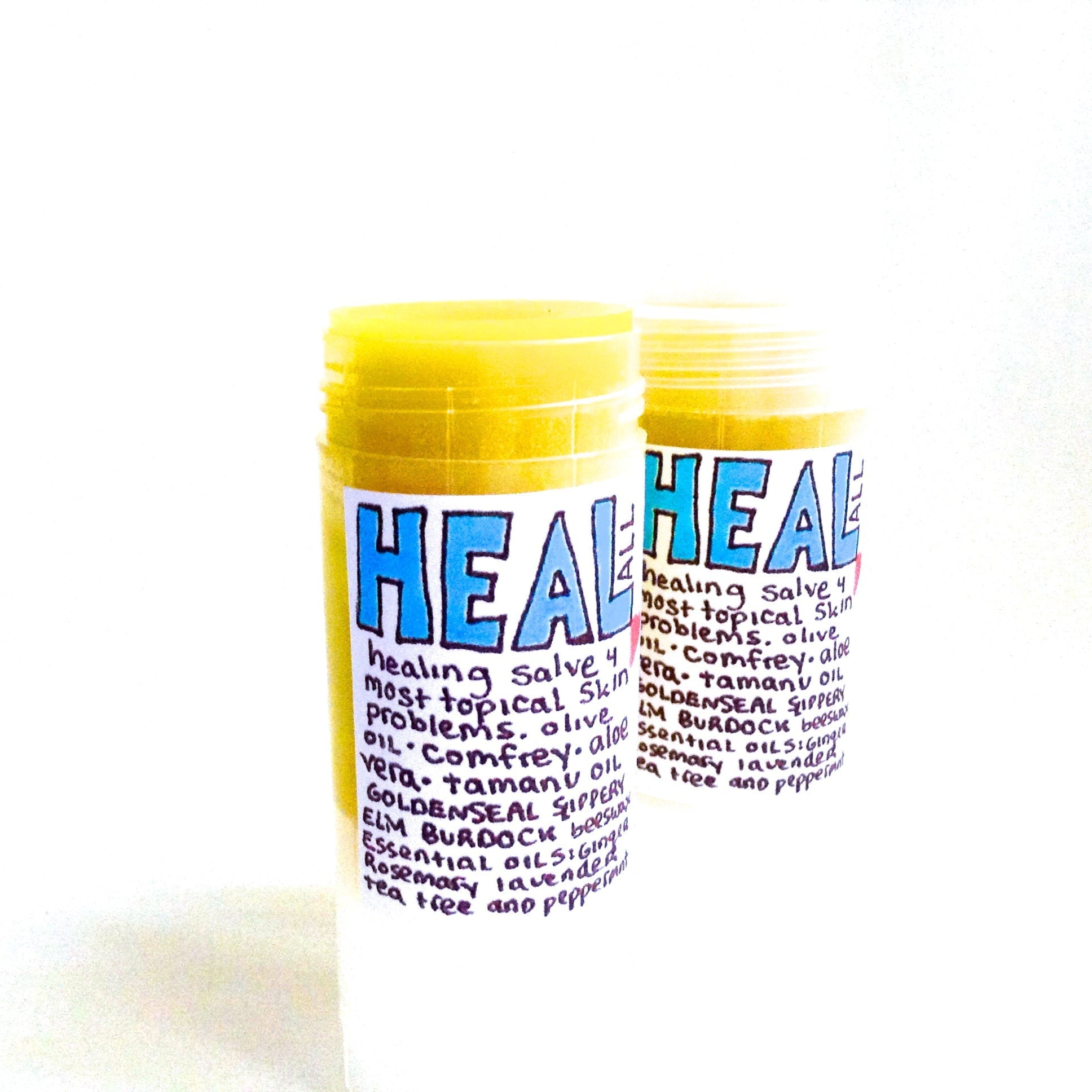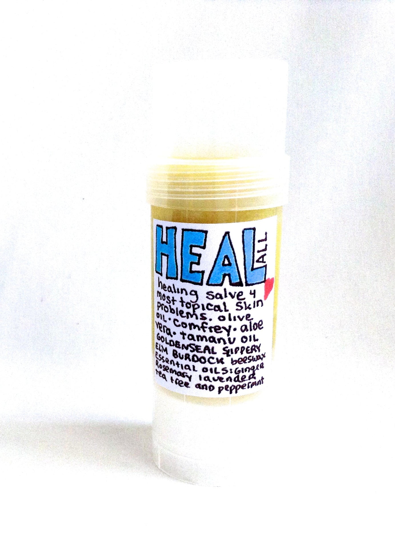 Directions: The giant sized chapstick eco push up tube allows easy roll-on application to affected areas. Might give the skin a slight yellow tint from the turmeric, best applied before bedtime or with ample time to allow natural absorption into skin. Great as a general moisturizing body salve for face and body. Fine for lips too! Suitable for all skin types. For sensitive skin, try a test patch at first. Discontinue use if irritation occurs. Please compost packaging. Heal Balm does contain a bee product (thank you bee's). Blemish Balm is a very close vegan alternative.