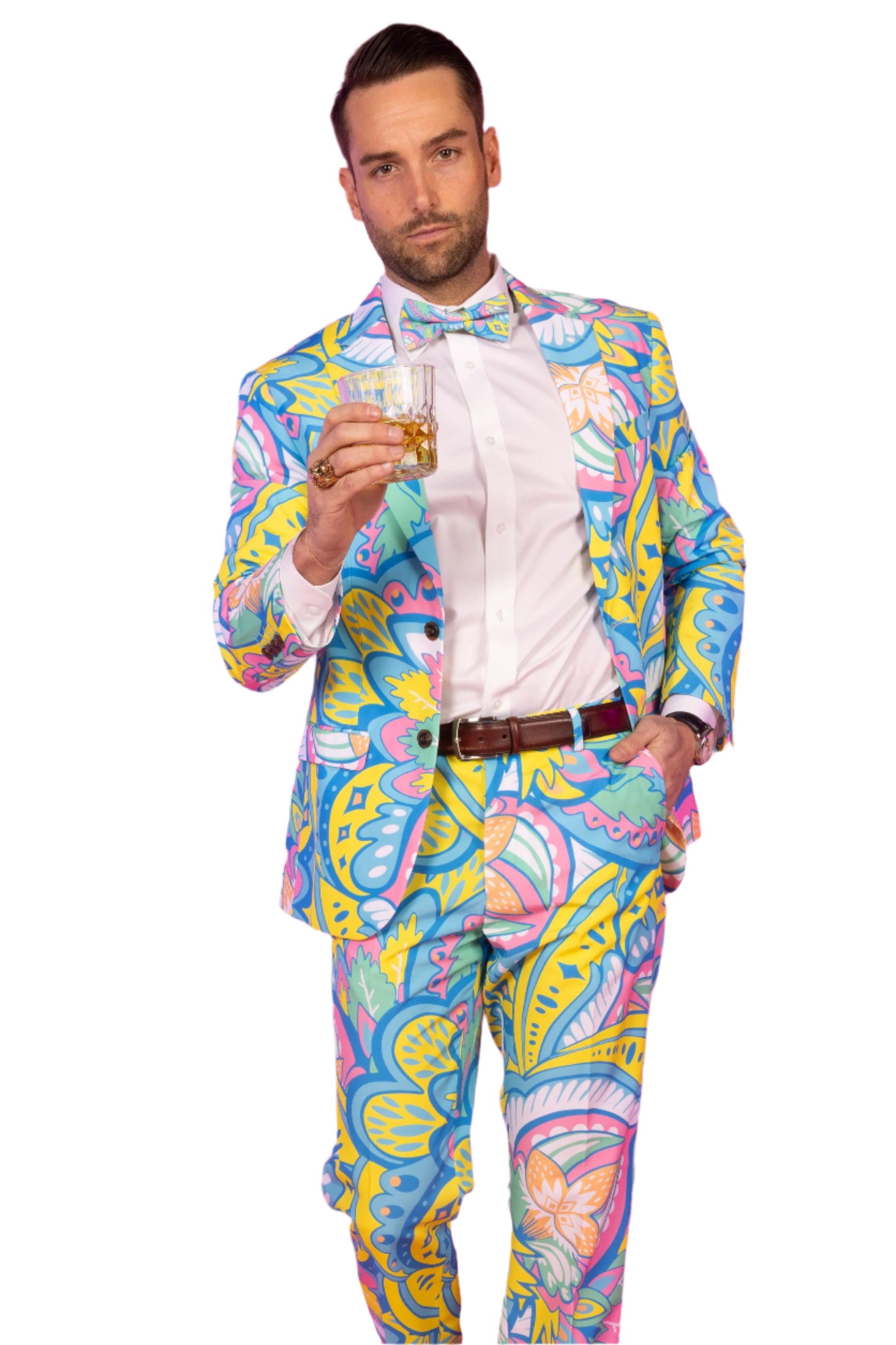 The April Showers | Abstract Paisley Suit stands out as the ultimate choice for elevating your brunch experience. Crafted with a distinctive abstract paisley pattern, this suit combines bold style with refined tailoring, ensuring you make a memorable impression. Whether you're sipping on a bottomless mimosa or sharing a plate of French Toast with friends, this suit complements every moment with effortless sophistication. Designed for the modern man who values both comfort and elegance, it’s a versatile addition to your wardrobe. Available for delivery within 5-10 days, it’s ready to enhance your next social occasion.
