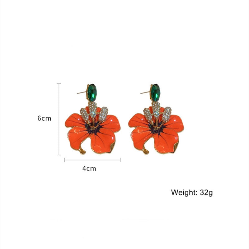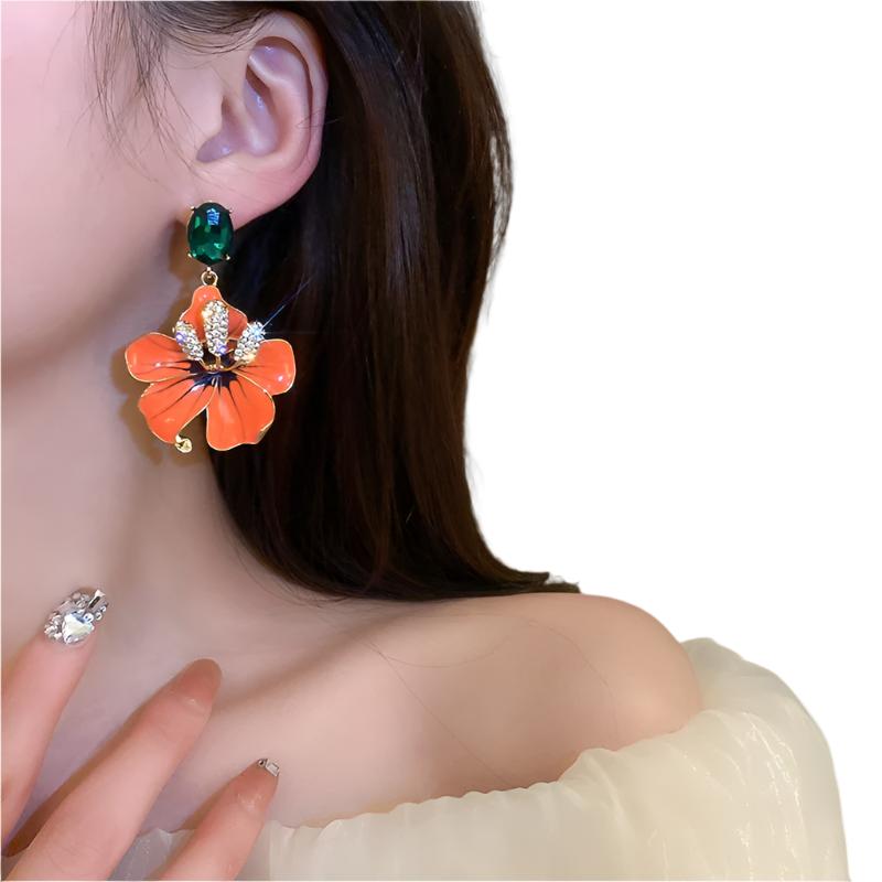 TEEK - Pendientes colgantes con flores esmaltadas en naranja