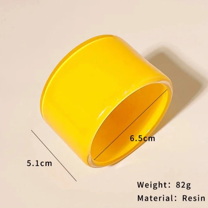 Experience the bold and vibrant colors of a Retro Colorful Wide Bangle, made for the stylish and confident women. Crafted with high-quality acrylic and plated with luxurious platinum, this bangle will add an eye-catching touch to any outfit. Embrace its round shape and enjoy free delivery within 10-15 days. Are you ready to make a statement with your accessories?