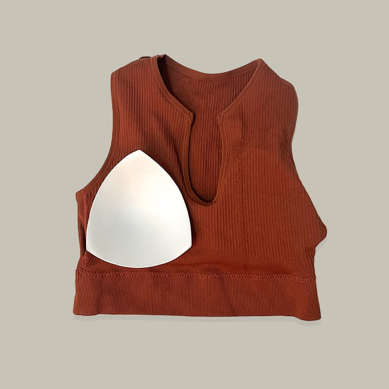 TEEK - Sujetador deportivo sin costuras y pantalones cortos de cintura alta