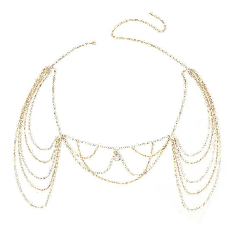TEEK - Water Drop Multi-Layer Rhinestone Chest Chain