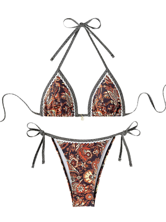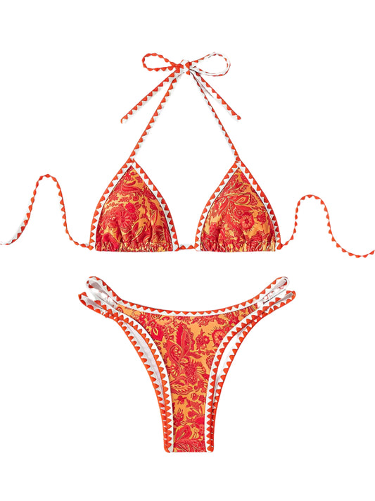 TEEK - Orange Red Tie-Dye Braided Floor-Llength Sarong Bikini Set