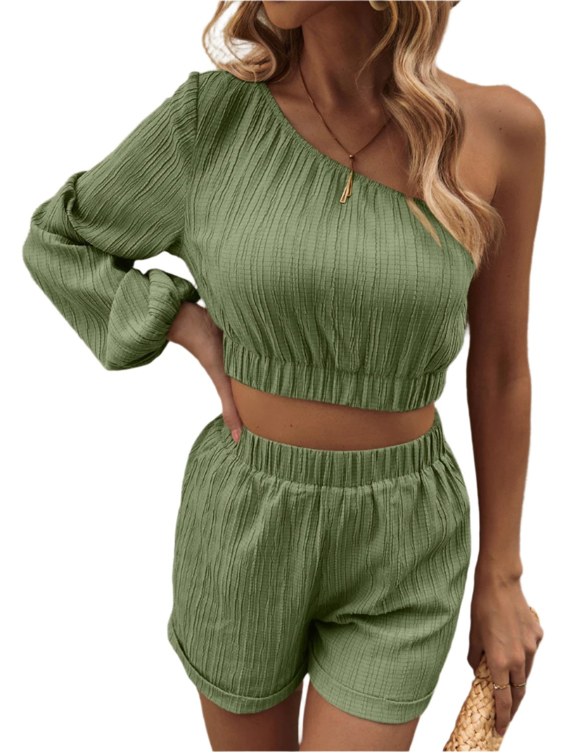 TEEK - Honey One Shoulder Long Sleeve Top Shorts Set