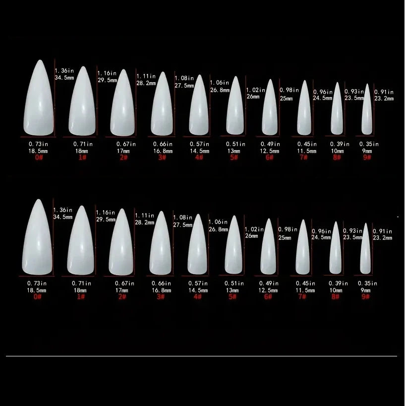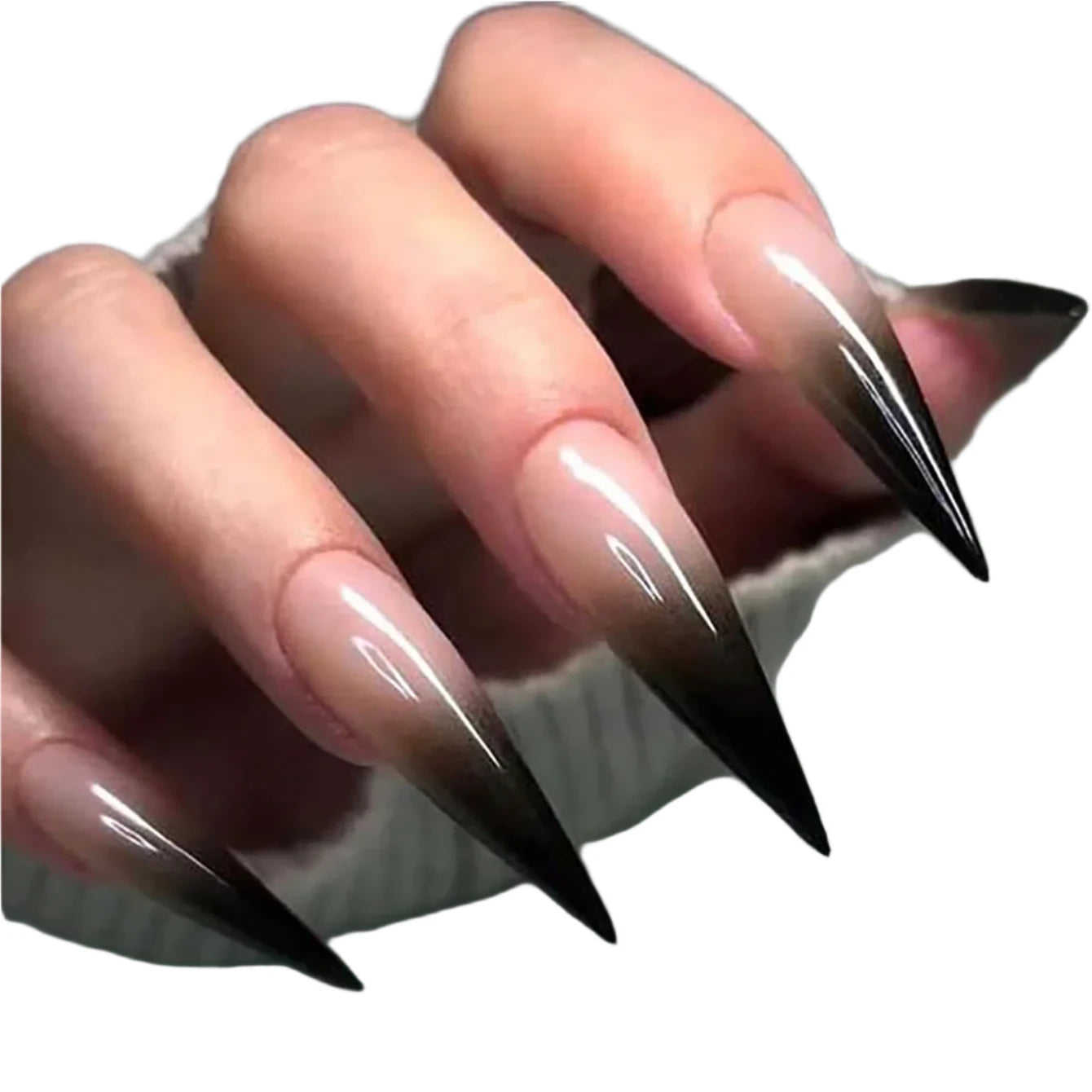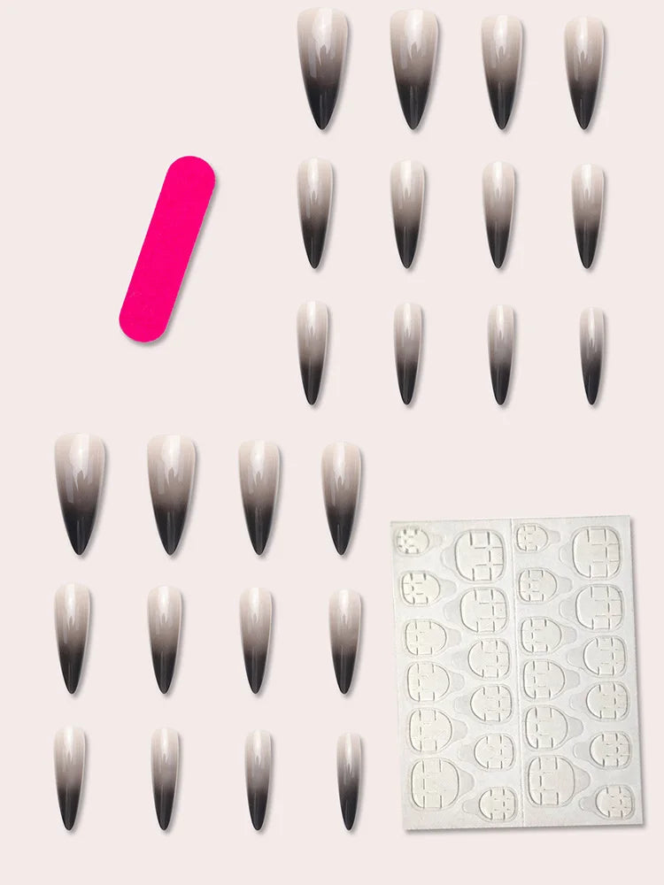 TEEK - 24 Piece Long Pointed Black Gradient Glossy False Nails
