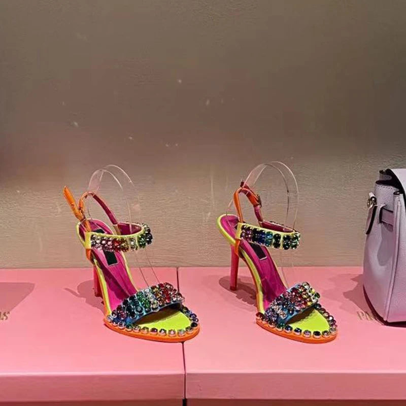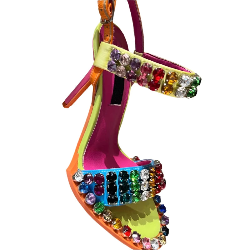 TEEK - Colorful Crystal Rivets Buckle Sandals