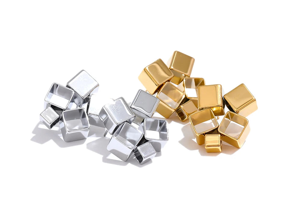 These unique geometric square stud earrings are made of durable stainless steel and feature a secure push-back closure. Perfect for women, the earrings are electroplated with PVD real gold for a stunning finish. With an estimated delivery time of 8-12 days, you can add these stylish earrings to your collection in no time.