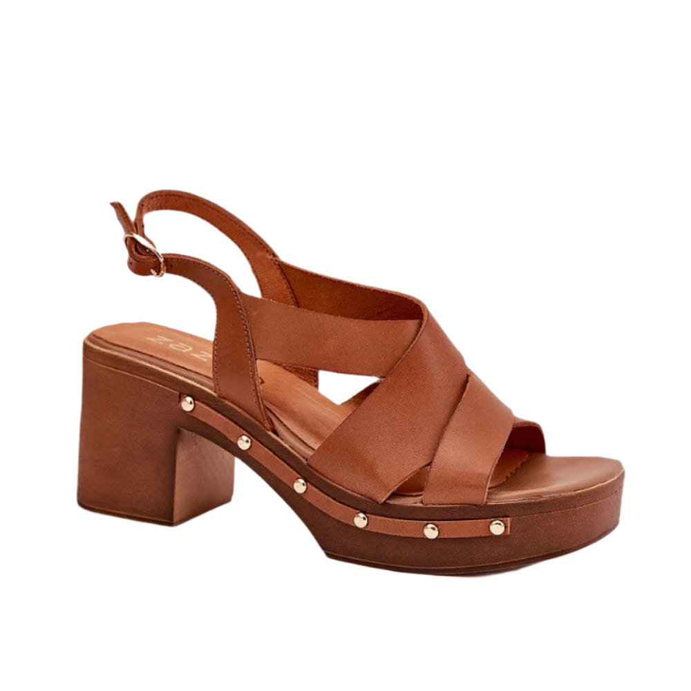 TEEK - Brown Pilar Heel Genuine Leather Heel Sandals