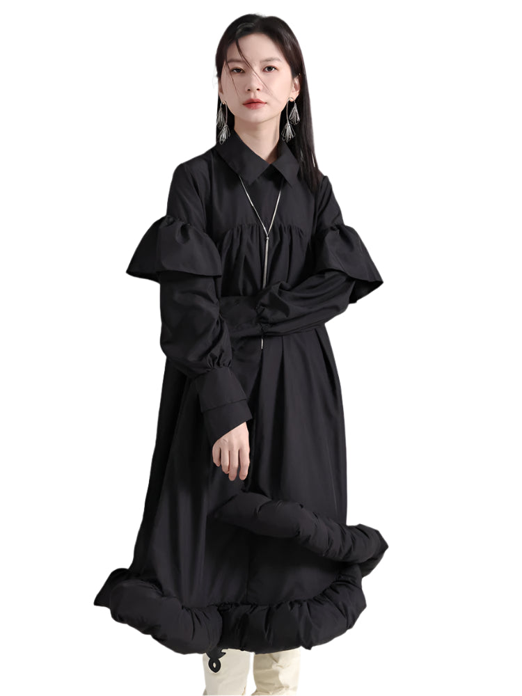The Plufey Long Sleeve Puff Dress in black is the perfect choice for the modern woman, with a closure type of pullover and a mid-calf length. The dress features a full sleeve length and a turn-down collar neckline, and is made from non-stretch polyester material for a loose and comfortable fit. Its solid pattern makes it a versatile option for both casual and formal occasions. With a delivery time of 4-8 days, this dress is a must-have for any wardrobe.