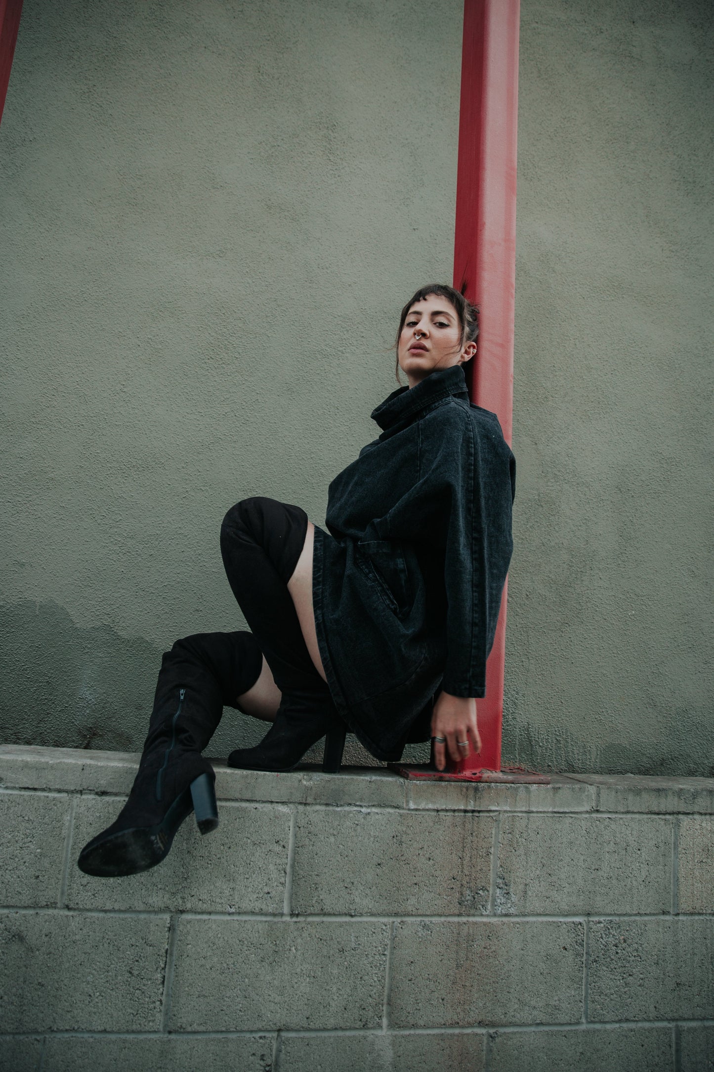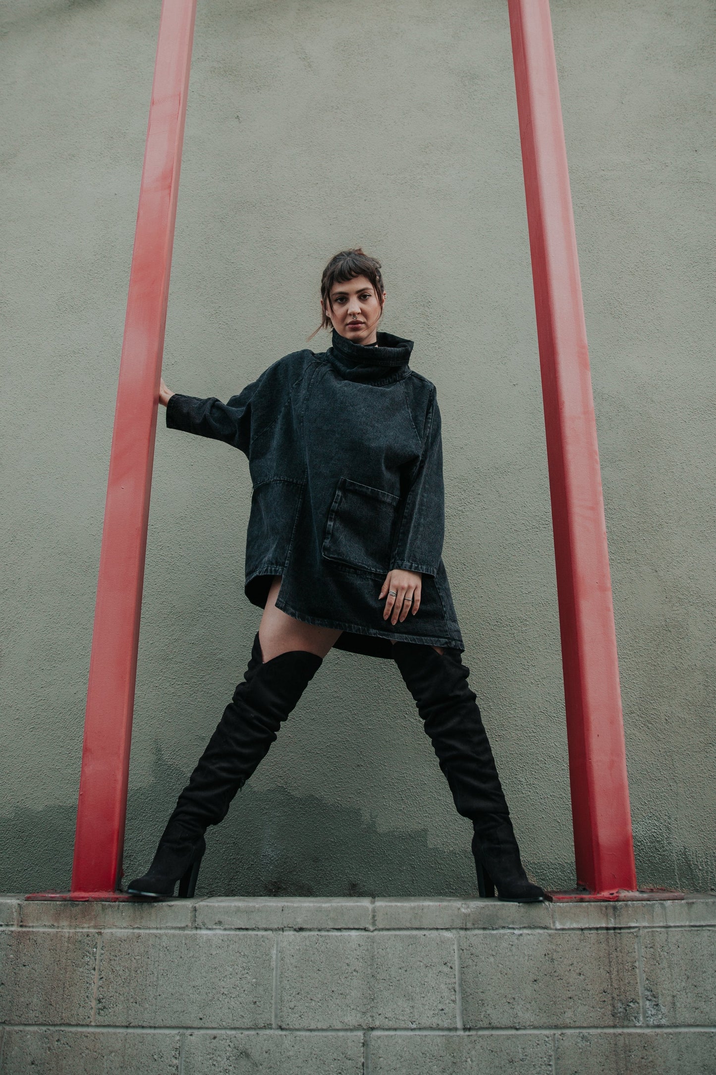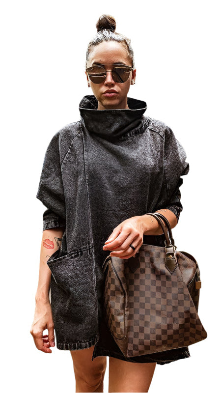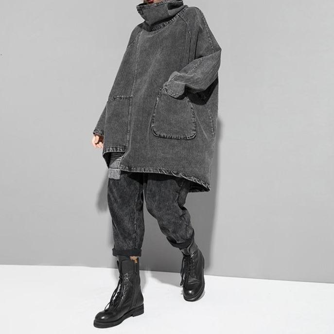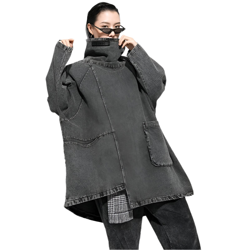 TEEK - Reon Turtleneck Loose Denim Sweatshirt