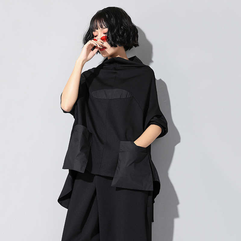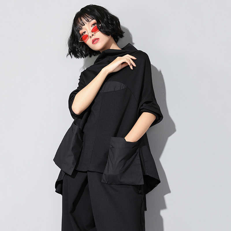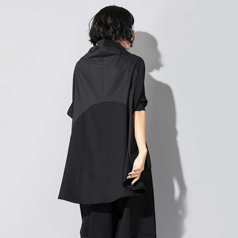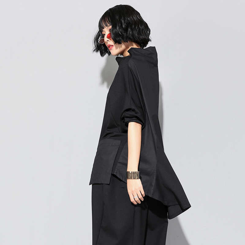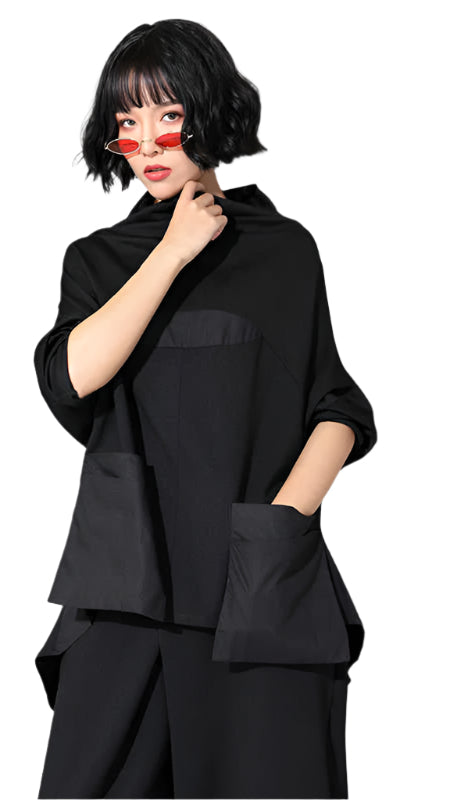 The Tenchi Big Pocket Shirt offers a sophisticated look with its regular length and solid pattern in classic black. Made from comfortable jersey cotton, this casual top features a full sleeve length and a turtleneck collar. Perfect for any occasion, delivery for this women's tee takes only 4-8 days.