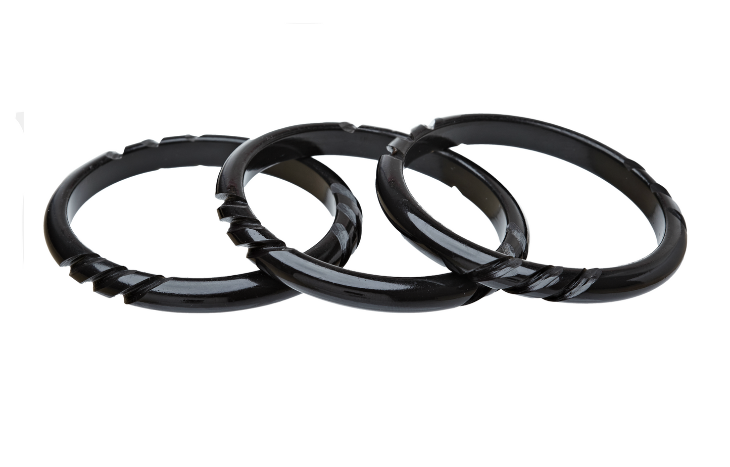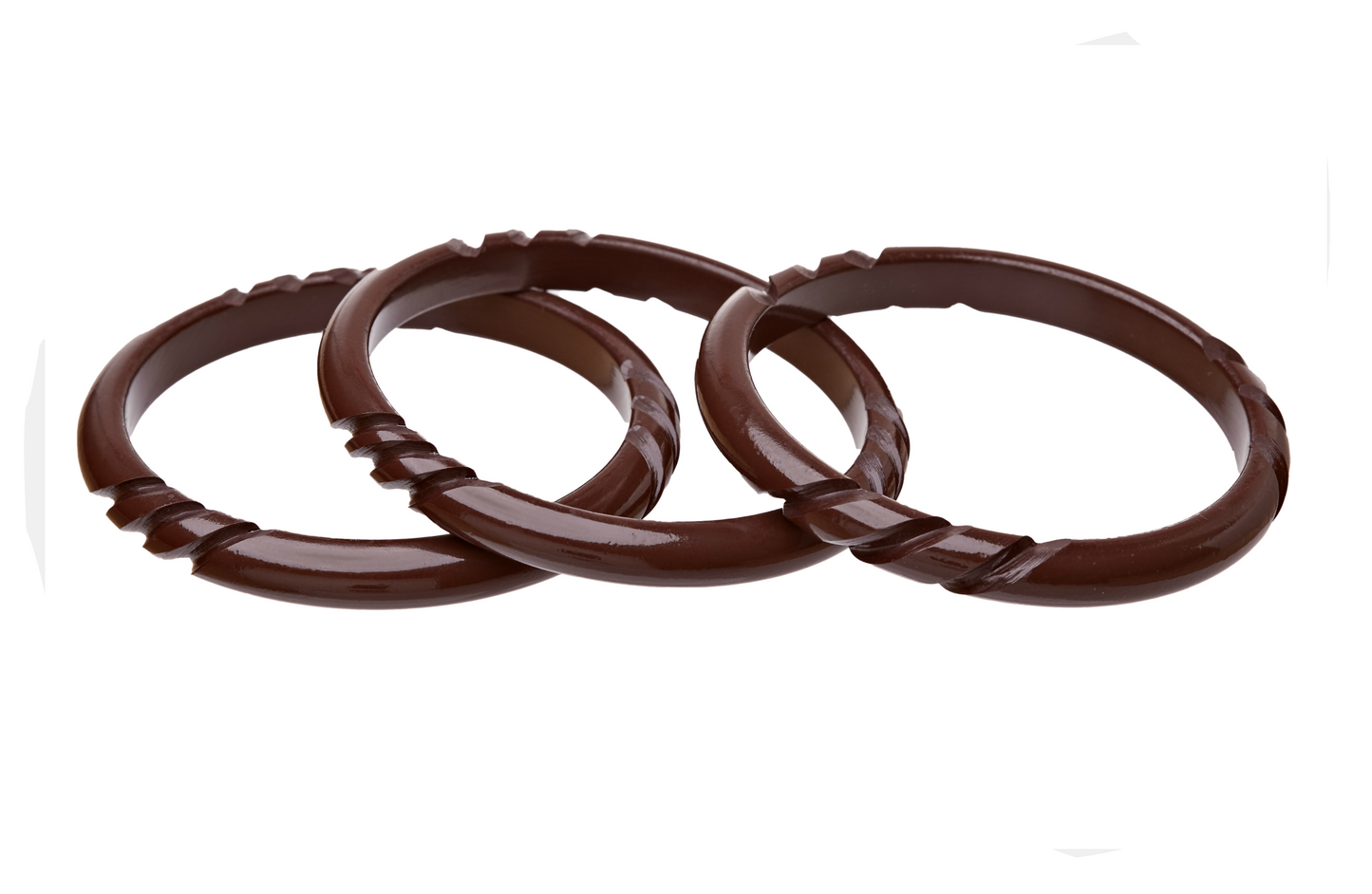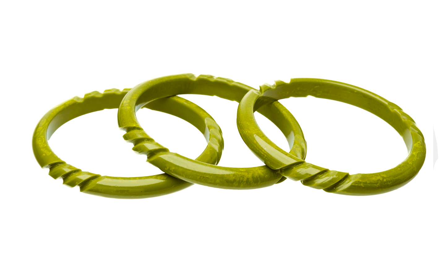 Discover the captivating Luau Lounge Collection with the Swizzle Spacer bracelet, now back in stock! Inspired by Dallas' Swizzle Luau Lounge, this hand-carved Lucite bracelet features deep notches carved three times around its circumference, perfectly complementing our Martiki and Aloha Jen cuffs. Crafted to be weighty and richly detailed, these bracelets evoke the charm of classic Bakelite with a Tiki twist. Available in Queen size (2 1/2" inside diameter) and three stunning colors: Pitch, Fern, and Teak. Durable and water-friendly, just avoid direct contact with aerosols to keep colors vibrant. Sold individually. Delivery in 5-10 days.
