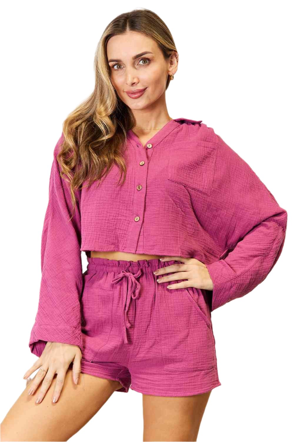 TEEK - Fuchsia Buttoned Long Sleeve Lounge Set