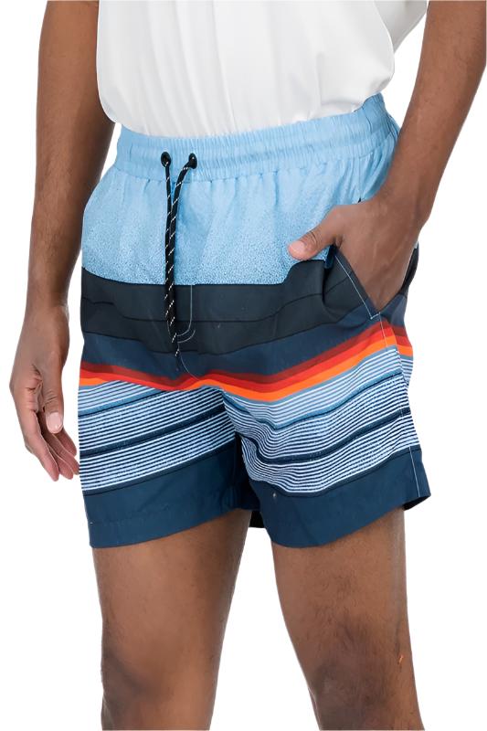 Experience optimal comfort and style with Blue stripes Swim Shorts! This must-have piece features a 5.5" inseam and a full elastic waistband for the perfect fit. The soft fabric and inner mesh liner add an extra layer of comfort, while the multiple pockets provide convenience. The bold blue stripes print will make you stand out at the beach or pool. Made of 100% polyester, these swim shorts are sure to become your new favorite. Order now and receive your delivery in just 6-10 days!