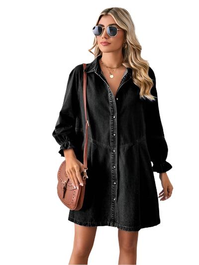 TEEK - Button Up Cute Cuffs Mini Denim Dress