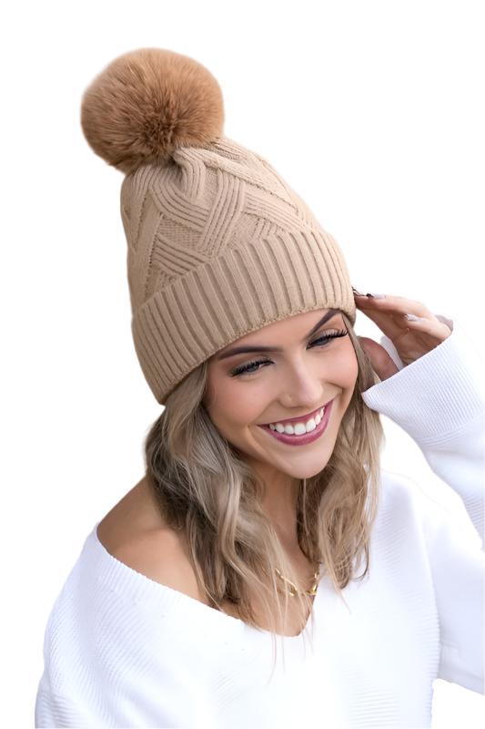 Keep warm and stylish with our Chunky Knit Fur Pom Beanie. Made with 100% soft knit acrylic, it features a natural faux fur pom and a fitted design with lots of stretch. The chunky knit design adds a touch of embellishment to this classic beanie. Perfect for teens and adults. Delivery in 5-10 days.