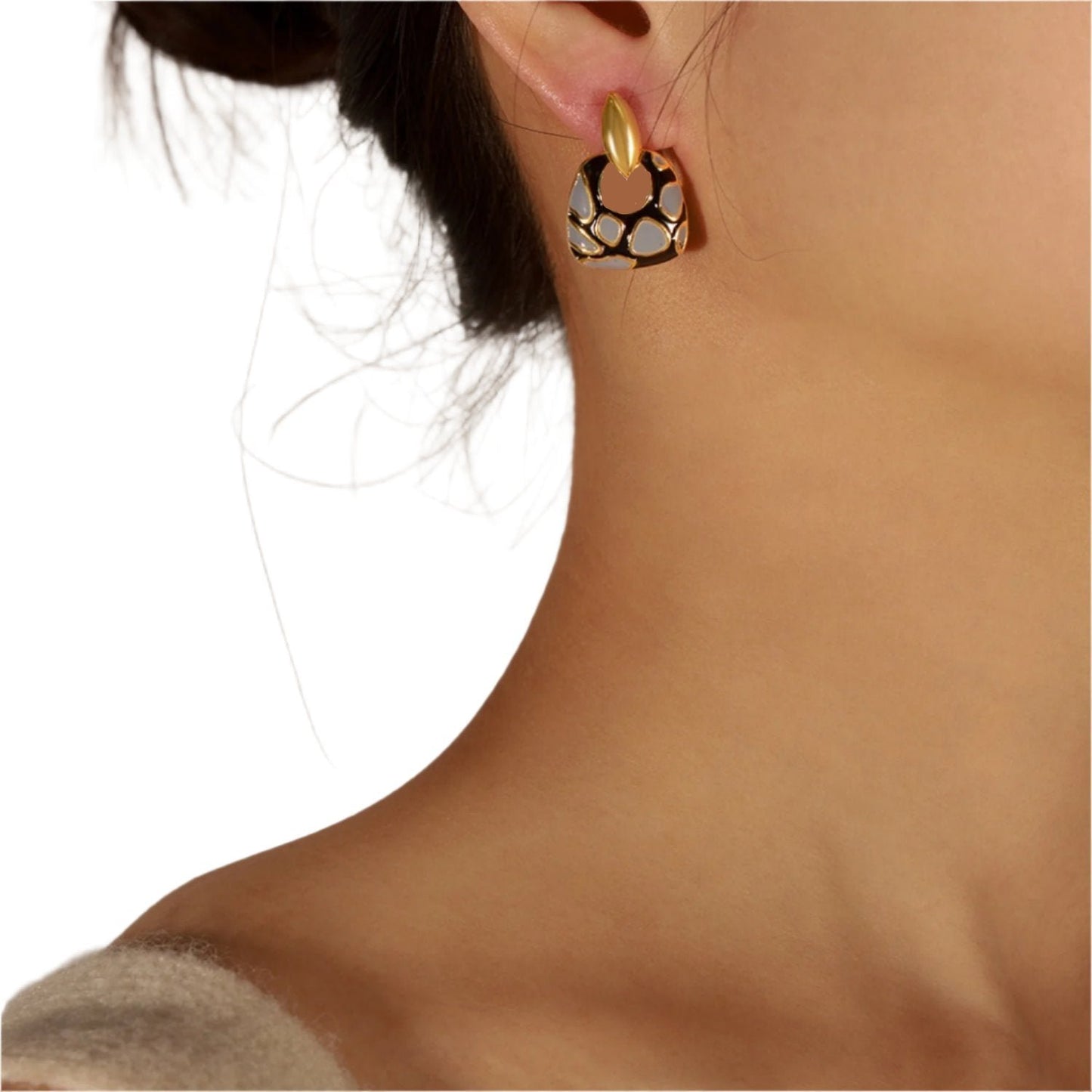 This exclusive product features a pair of luxurious earrings made with copper and oil drip, plated in gold. The measurements are 1.1 inches in length and weigh 0.2 ounces (6 g), making it a perfect addition to any outfit. Delivery will take 6-10 days.