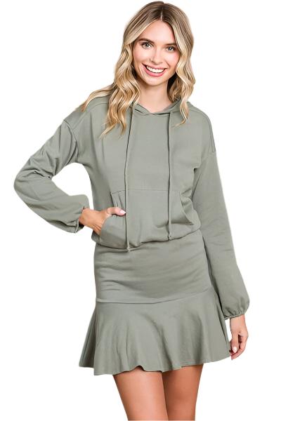 TEEK - Fade Olive Drawstring Hooded Mini Dress