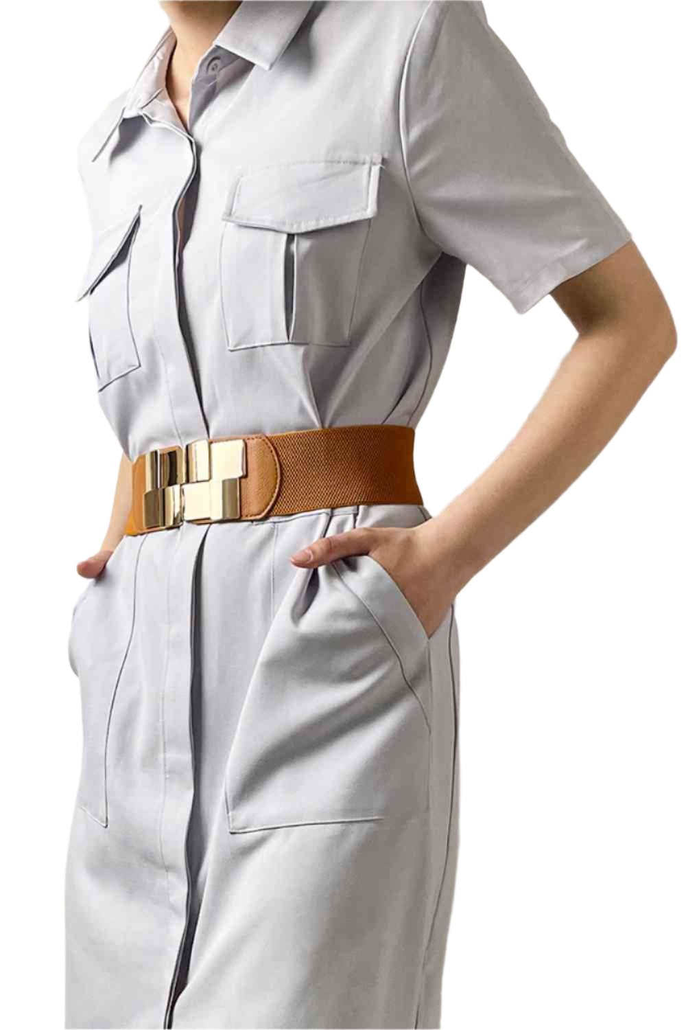 TEEK - Squared Geometric Buckle Stretch Wide Belt