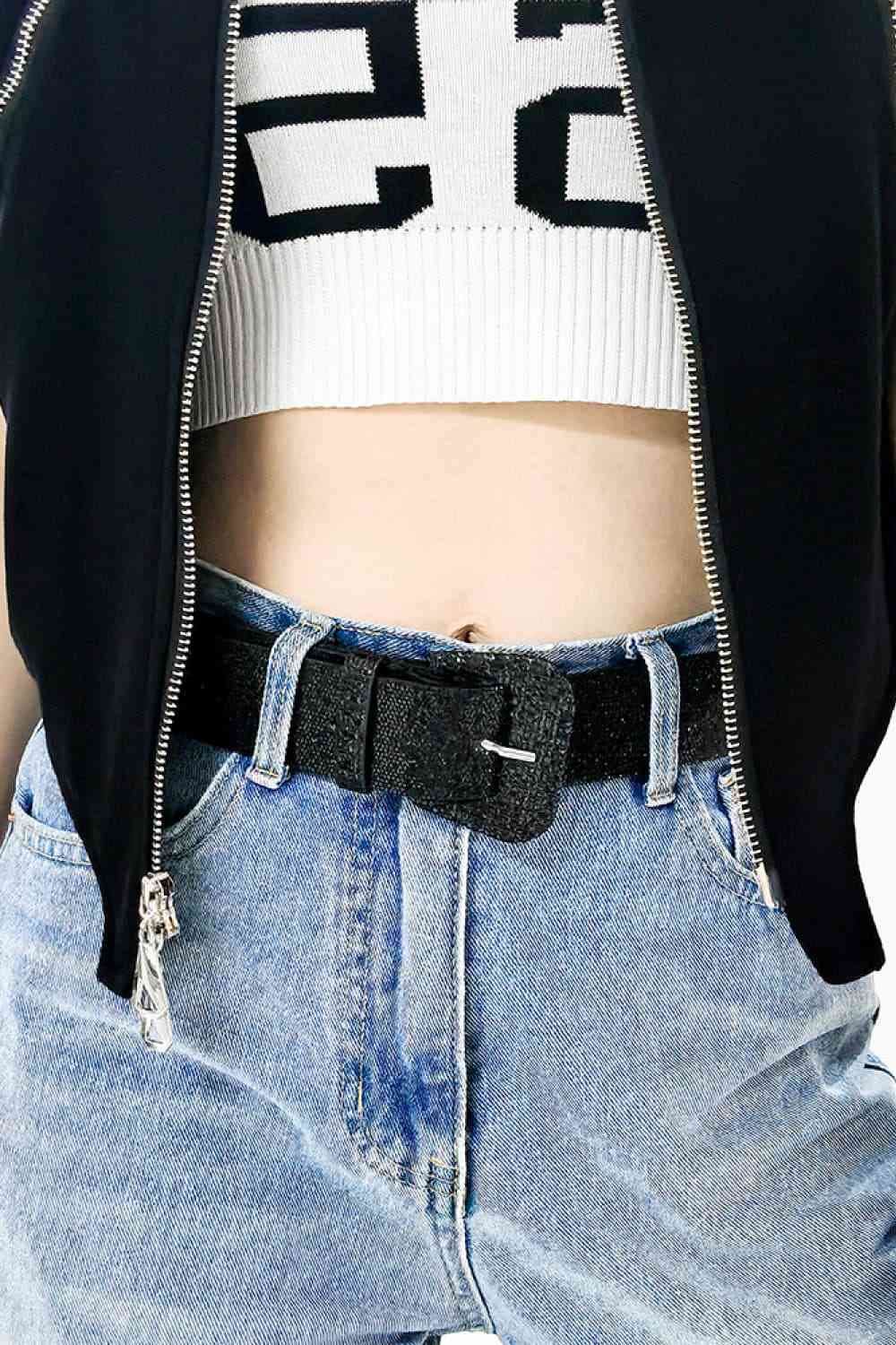 Expertly crafted with glittery PU leather, our women's belt adds a touch of glamour to any outfit. With a sleek 41.3*1.5 inch design and 2 inch buckle, this belt is both stylish and practical. Expect delivery within 6-12 days and elevate your wardrobe with this statement piece.