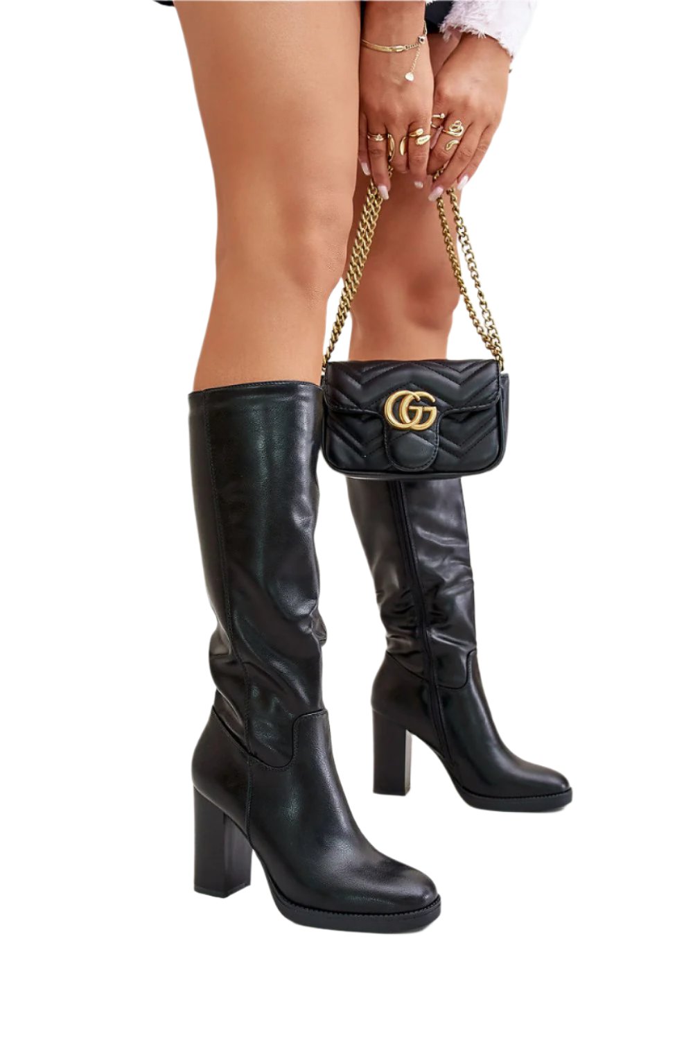 Elevate your fashion game with these eco leather women's boots! Featuring a sleek column-shaped heel, rounded toes, and a shaft that reaches above the knee, these boots exude both style and comfort. Fastened with a zipper, they are a perfect addition to any outfit, particularly dresses and skirts. The warmers and footbed made of artificial leather provide ultimate comfort while the upper measures at a height of 13.8 inches and the heel at 4 inches. Order now and receive your boots in just 8-12 days!