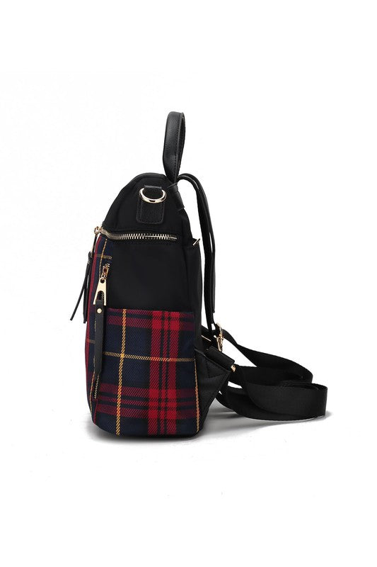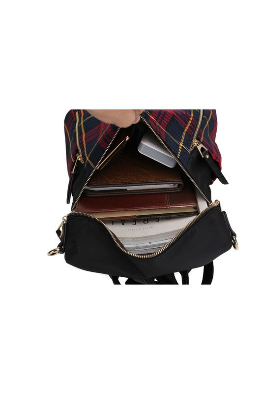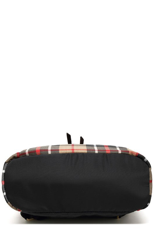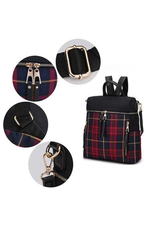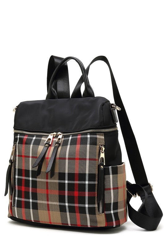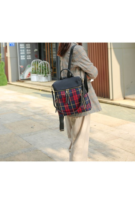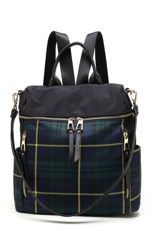 Look at this backpack made of fancy nylon! It's got some swanky gold hardware and an adjustable strap - wear it crossbody or on one shoulder. Inside, there's plenty of room for your stuff with two pockets and a zipper pocket. And don't forget about the two pockets on the outside and two zippers on the sides! It's about 11.5 inches long, 5 inches wide, and 11.5 inches tall, with a flat handle drop of 4 inches. This is the ultimate in casual plaid perfection, complete with pockets and zippers galore. Oh, and did we mention it'll be at your door in 6-10 days? Yup.