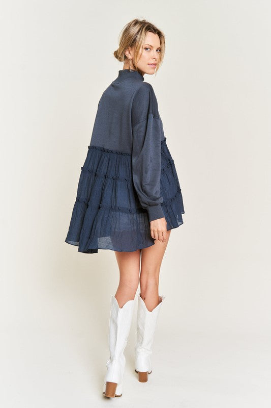 Indulge in the luxurious design of this oversized knit tunic top. Featuring a mock neck, drop shoulders, and exquisite ribbed trim. The woven fabric at the bottom tier adds elegant shirring for a truly sophisticated touch. Crafted from a blend of high-quality materials including 95% polyester and 5% spandex, with contrasting accents of 65% cotton and 35% polyester. Enjoy the exclusive feeling of this premium piece, delivered to your doorstep within 6-10 days.