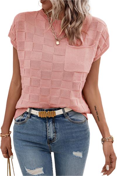 Stay warm and stylish in our Plaid Pocketed Round Neck Sweater. Made with a moderate stretch blend of 75% acrylic and 25% polyamide, it offers comfort and durability. Its dusty pink color adds a feminine touch while the pockets provide functionality. Machine washable with delivery in 6-12 days.