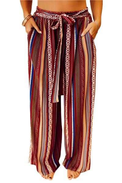 These Printed Tied Wide Leg Pants for women are both stylish and functional. Featuring a tied waist and convenient pockets, they are made from 100% polyester for a comfortable fit. With an opaque material, they are perfect for any occasion. Machine washable and available in a multicolor print, these pants will be delivered within 6-12 days.