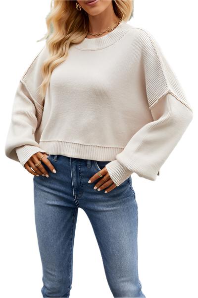 As a product and industry expert, I present the Round Neck Dropped Shoulder Sweater for women. This basic style sweater is made with a stretchy material composition of 56% rayon, 37% acrylic, 6% nylon, and 1% elastane. Easy to care for with machine wash and low tumble dry. Delivers in 6-12 days.