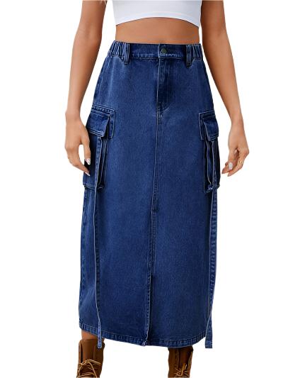 TEEK - Slit Pocketed High Waist Denim Skirt