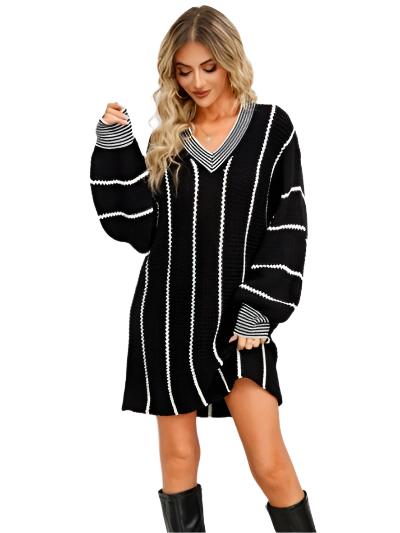 Stay stylish with the Black Striped V-Neck Mini Dress. Made with 100% acrylic for a comfortable fit, this basic style dress offers moderate stretch for a flattering silhouette. Perfect for any occasion, it will be delivered to you in just 5-10 days.