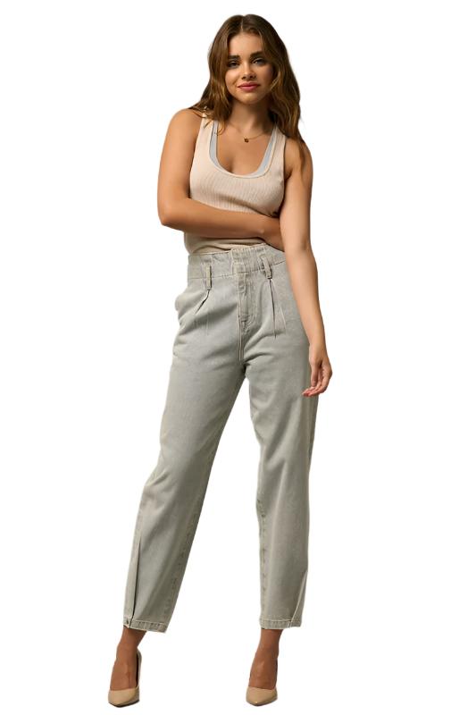 These balloon jeans have a super high waist and are made of 100% cotton non-stretch denim, giving you a casual and stylish look. Featuring a pleated front and a light wash denim print/pattern, these jeans have a flattering high rise fit and a comfortable, non-sheer fabric. The cropped length and button closure add to the overall appeal. With a delivery time of 6-10 days, you'll be wearing these jeans in no time!