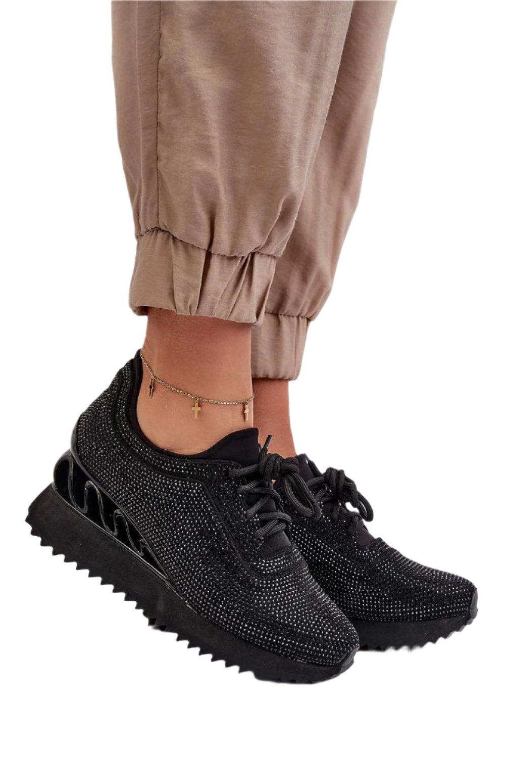 Take your style to the next level with these Black Lit Lift Sneakers adorned with zircons for a touch of sparkle and set on an anchor for added height and stability. This unique footwear not only makes a statement, but also delivers all-day comfort for any occasion. Made with high-quality fabric and natural leather, the footbed offers a 3-inch lift while the heel stands at 2.5 inches and the platform at 1 inch. Get ready to elevate your look and order now for delivery in just 8-12 days!