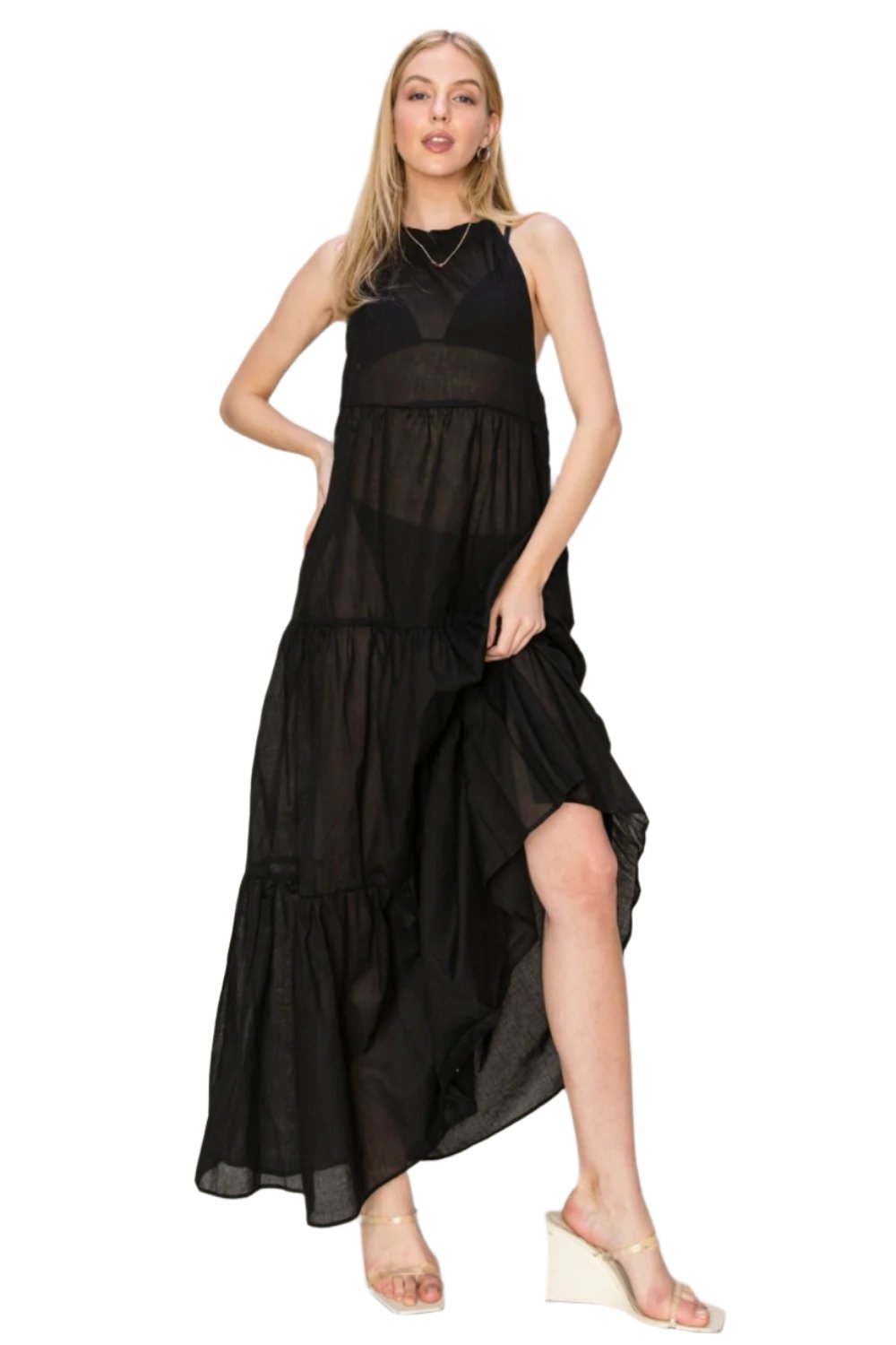 TEEK - Black Semi-Sheer Halter Neck Cover Up Dress