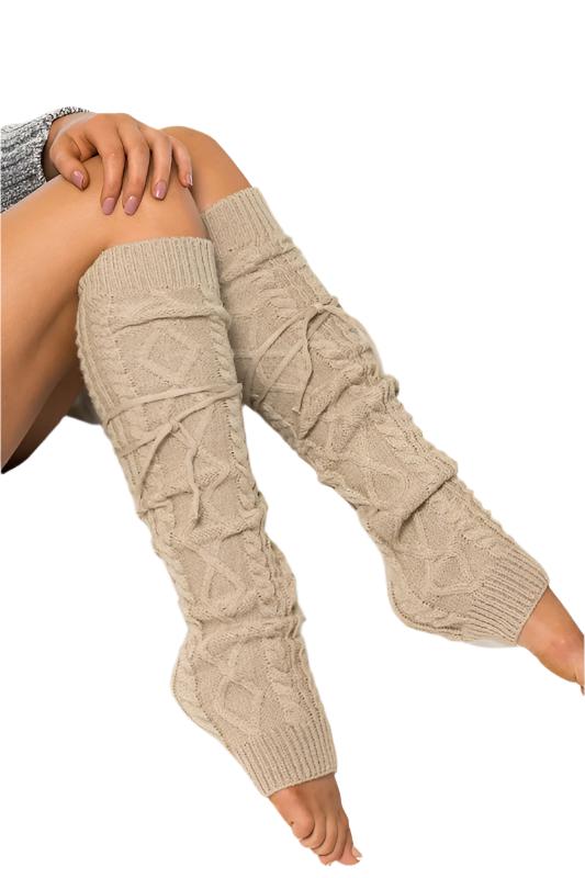 Crafted with a classic cable knit pattern, these leg warmers are designed for ultimate warmth and comfort. The removable ties add a touch of versatility while the length of approximately 25" makes them suitable for various activities. Perfect for lounging or running errands, you'll love having these in your wardrobe. Delivery time is estimated at 6-10 days.