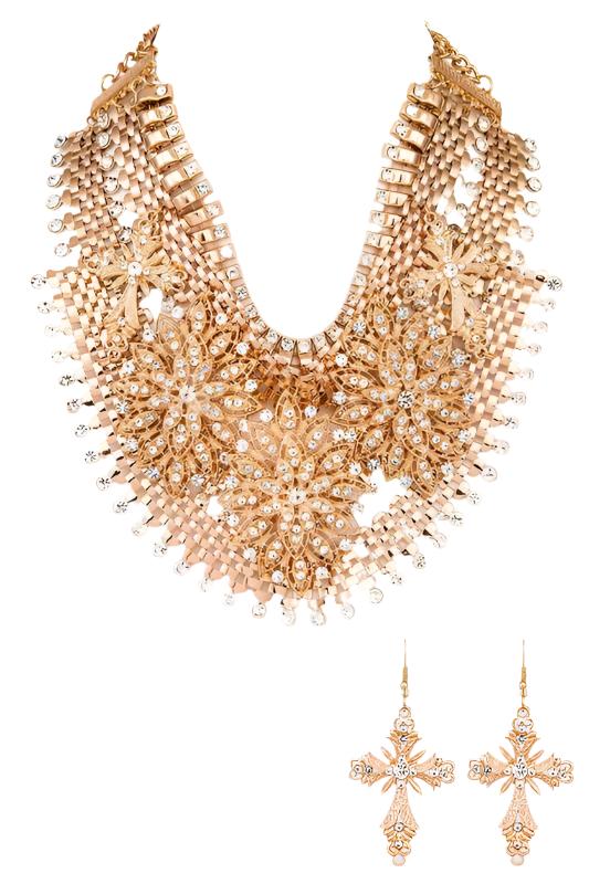 TEEK - Crystal Accent Statement Bib Necklace Set