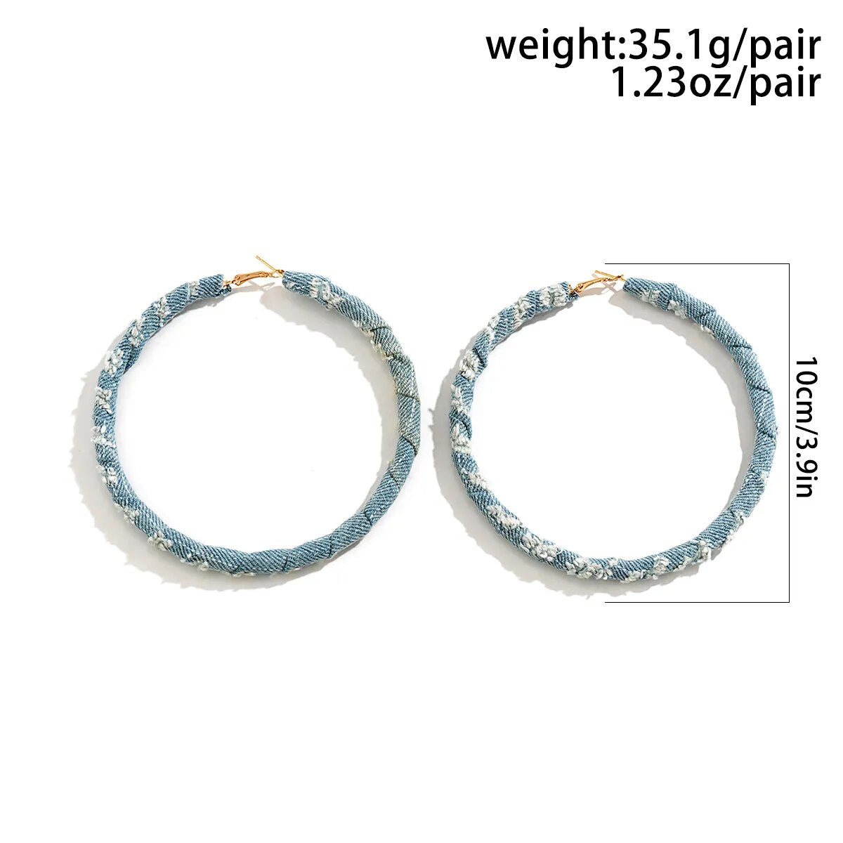 These stylish denim circle hoop earrings are the perfect accessory for any wardrobe. Crafted from a durable iron alloy and cotton, they are sure to last. Perfect for all occasions, they will be delivered within 20-25 days.