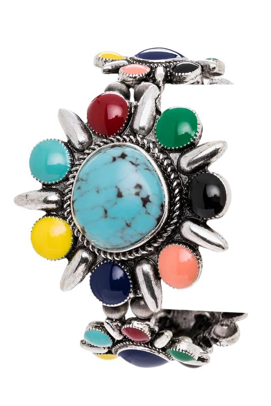 This Genuine Stone Flower Stretch Bracelet boasts a 2" width and a comfortable stretch fit, making it perfect for all. Plus, it is lead and nickel compliant and will be delivered to you within 6-10 days.