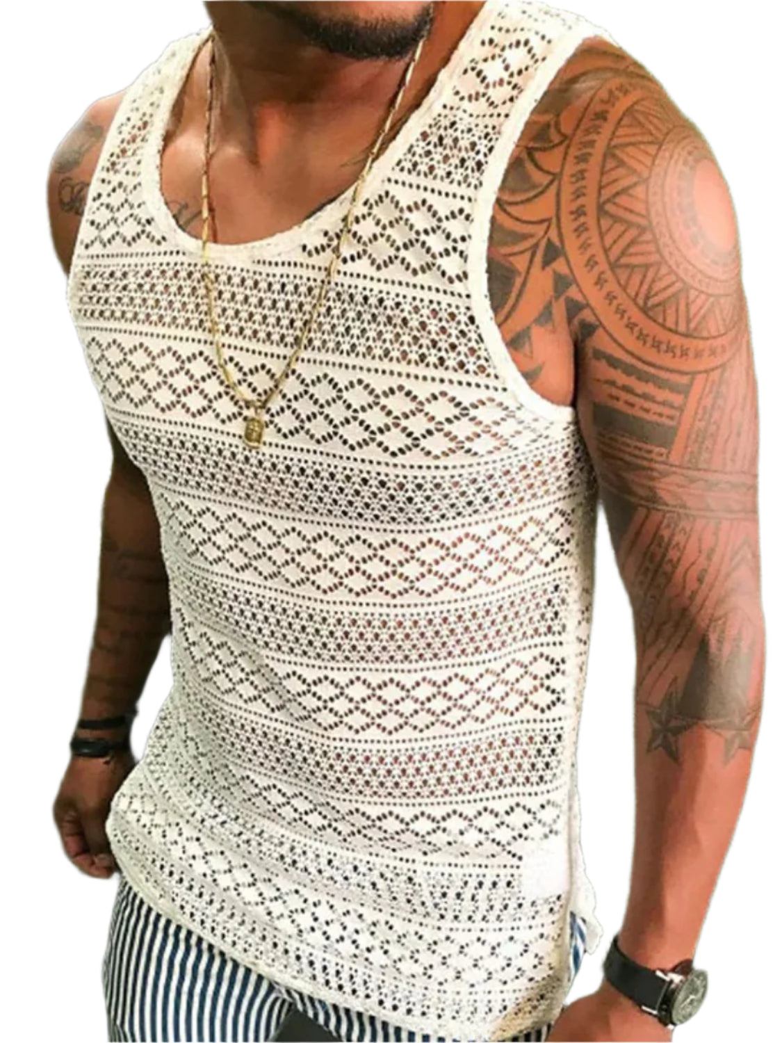 TEEK - Mens Full Size Openwork Round Neck Tank