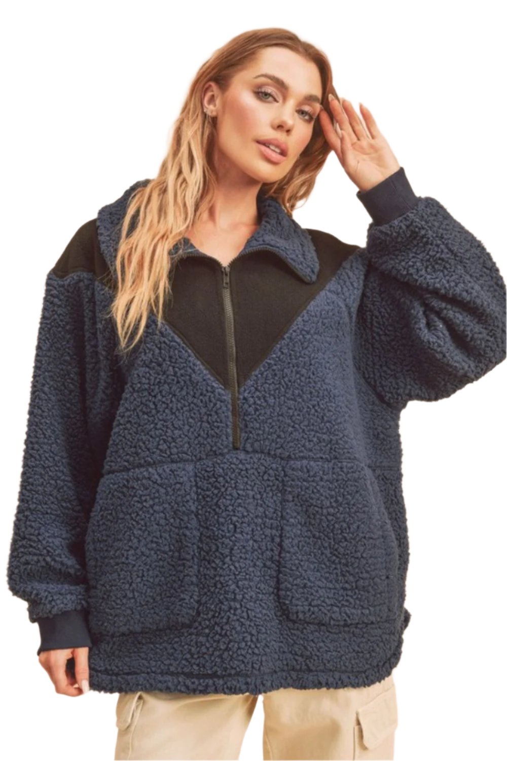 TEEK - Navy Two Tone Half Zip Fleece Sweatshirt Jacket