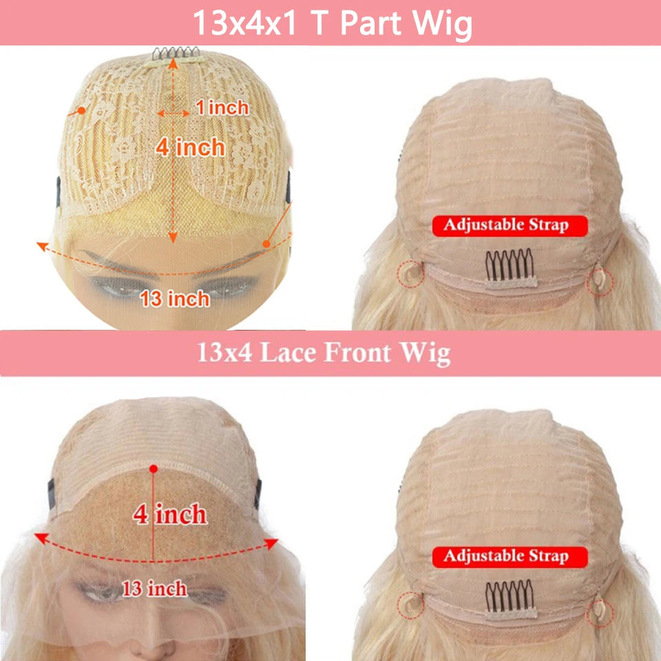 This luxurious Remy wig boasts a 13*4 frontal base made with Swiss lace and features a stunning ombre honey blonde color palette, including shades of brown, 613 blonde, and 60 platinum blonde. The texture is beautifully wet and wavy, resembling a short bob with an elegant delivery time of 20-25 days.