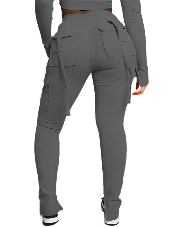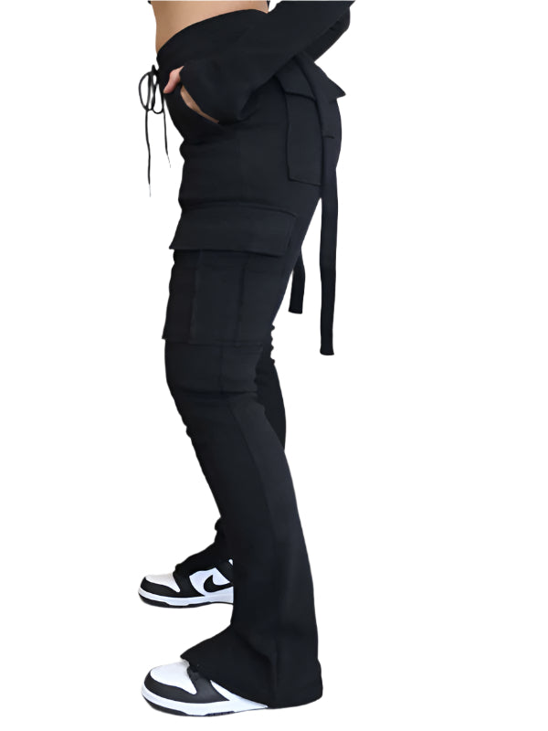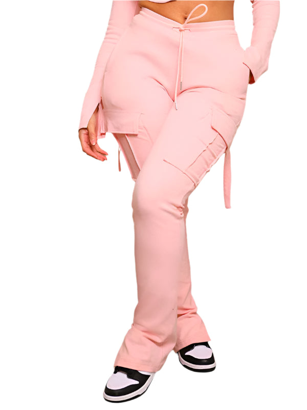 TEEK - Pocketed Drawstring Waist Slit Trousers
