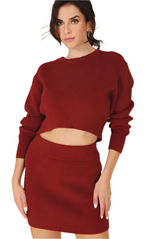 TEEK - Ribbed Knit Crop Top and Skirt Set