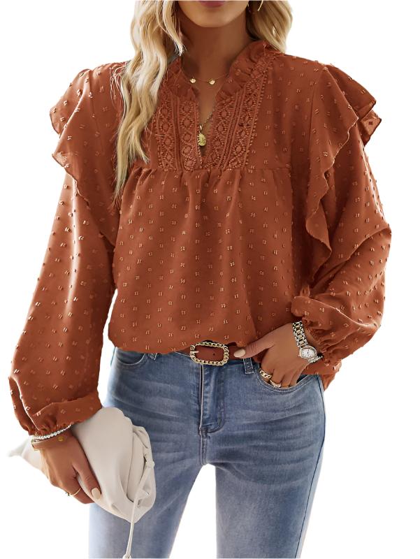TEEK - Ruffled Lantern Sleeve Lace Top