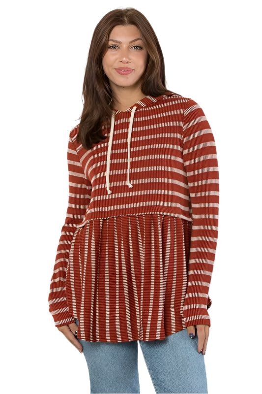 TEEK - Rust Drawstring Striped Babydoll Hoodie